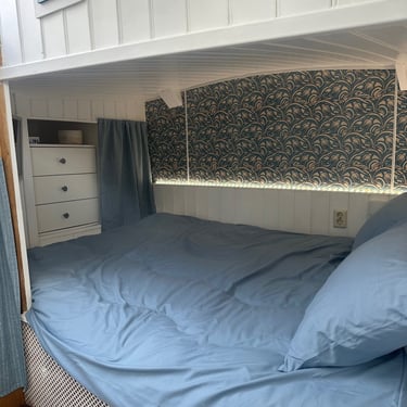 Une belle cabine privée, cosy, avec salle de bain, à bord de notre péniche hollandaise de 1905.